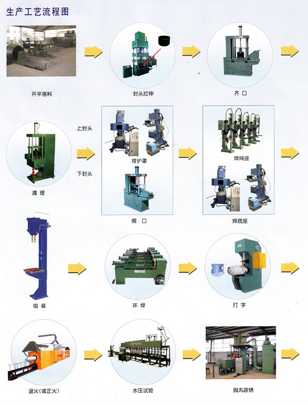 創(chuàng)辦于83年的泰州市羚驊機(jī)械有限公司是國內(nèi)設(shè)計(jì)生產(chǎn)液化石油氣鋼瓶成套生產(chǎn)設(shè)備的企業(yè)。產(chǎn)品包括:開平落料線、封頭拉伸成型機(jī)、齊口機(jī)、縮口機(jī)、清理去毛剌機(jī)、沖孔機(jī)、焊瓶嘴機(jī)、焊護(hù)罩機(jī)、焊底座機(jī)、投瓶…